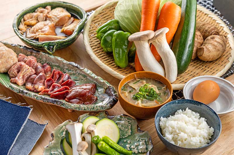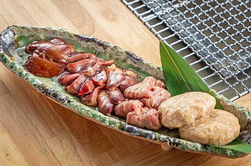 鶏肉は、みやざき地頭鶏のもも肉やむね肉をはじめ、砂ずり、はつ、きも、せせり、皮など、様々な部位をご提供。厳選した鶏肉を鮮度抜群な状態で仕入れており、炭火で香ばしく焼き上げるだけで、絶品の料理に昇華します。炉端焼き以外も熊本直送の馬刺しや郷土料理のだご汁など、多彩なメニューをご用意。新作メニューもあり、何度ご来店頂いても飽きのこないメニュー構成を心がけております。