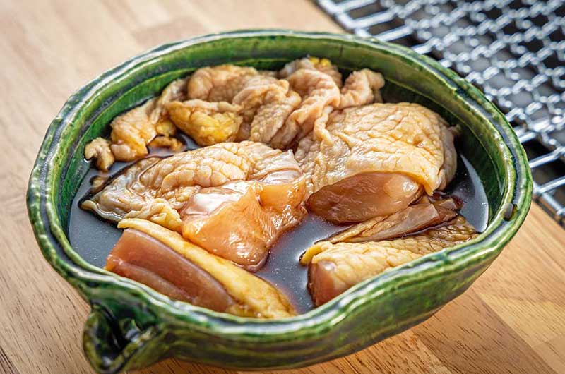 地鶏はそのまま食べて頂いても美味しいですが、地元糸島から仕入れる平飼いの卵「つまんでご卵」に付けて食べて頂くのもおすすめ。濃厚な卵のソースをまとったお肉はまさしく絶品!ぜひお試しください。