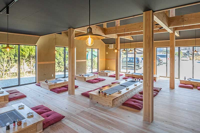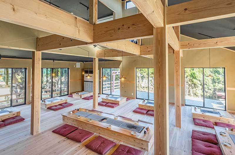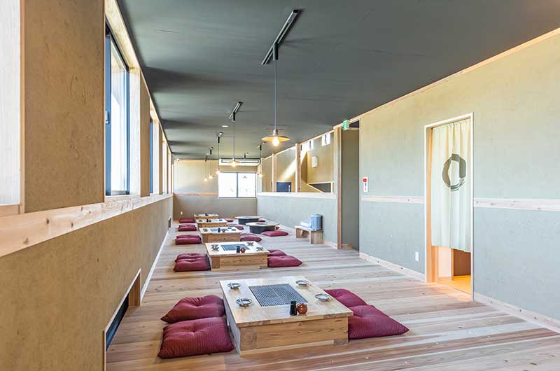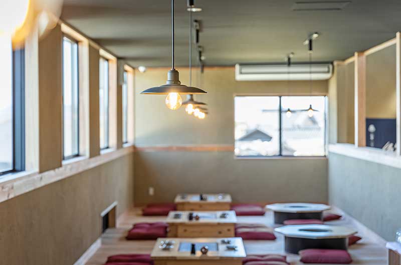 店内は、1Fと2Fに分かれ、2Fはロフト型のお食事スペースになっております。各テーブルには、炉端焼きの炭火ロースターが設置されております。70席以上のゆったりとした広さで、少人数から団体様まで、様々な用途でご利用頂けます。